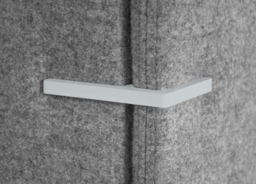 STOO® FREE standing screen connecting metal connects two acoustic screens together, in L-shape.