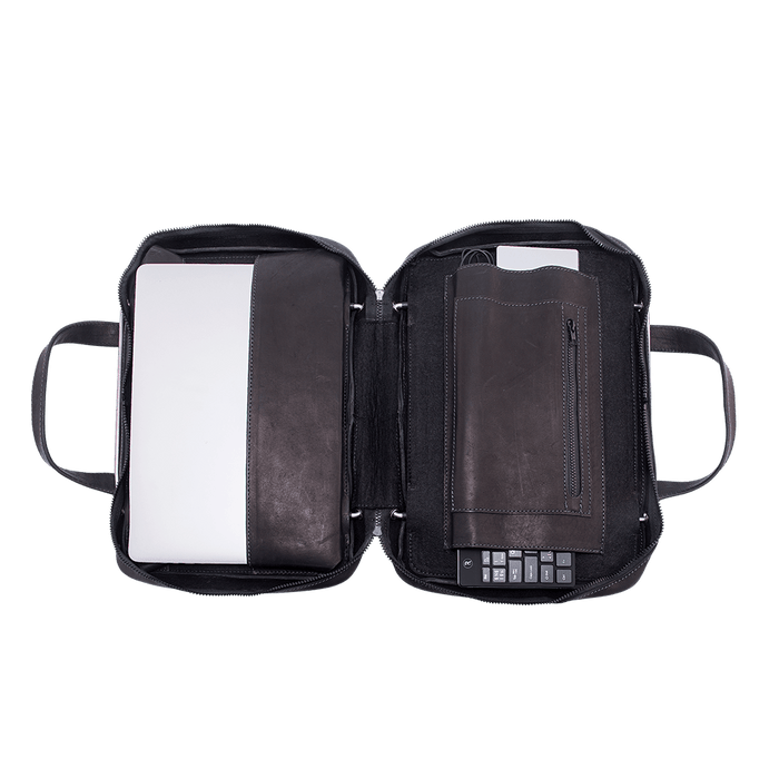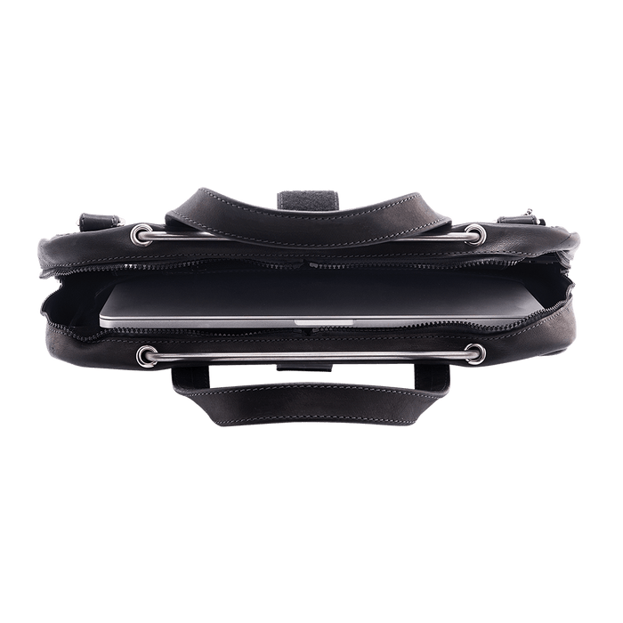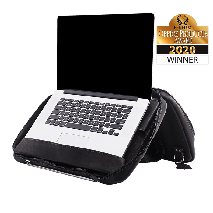 The R-Go Viva Laptop Bag is an ergonomic leather bag with integrated laptop stand. The height-adjustable laptop stand raises your laptop screen to eye level. This makes it possible to work in a healthy, upright posture at any location. The bag has extra compartments for a separate keyboard and mouse. The R-Go Viva laptop bag is produced in cooperation with the Agua Viva foundation in Brazil. This foundation offers new opportunities to people who have gotten into trouble (e.g. because of alcohol or drug abuse or psychological complaints). Learning a trade is an essential part of earning a living. Besides creating employment, we donate about 20% of the production costs per bag to the Agua Viva Foundation.