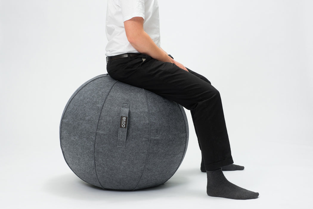 Stoo® aktiivipallon päällyste on tyylikästä ja miellyttävän tuntuista huopakangasta. Kangas on irrotettavissa ja sen voi konepestä. Alaosan luistamaton pintamateriaali pitää pallon paikallaan ja kantokahva helpottaa pallon siirtämistä.